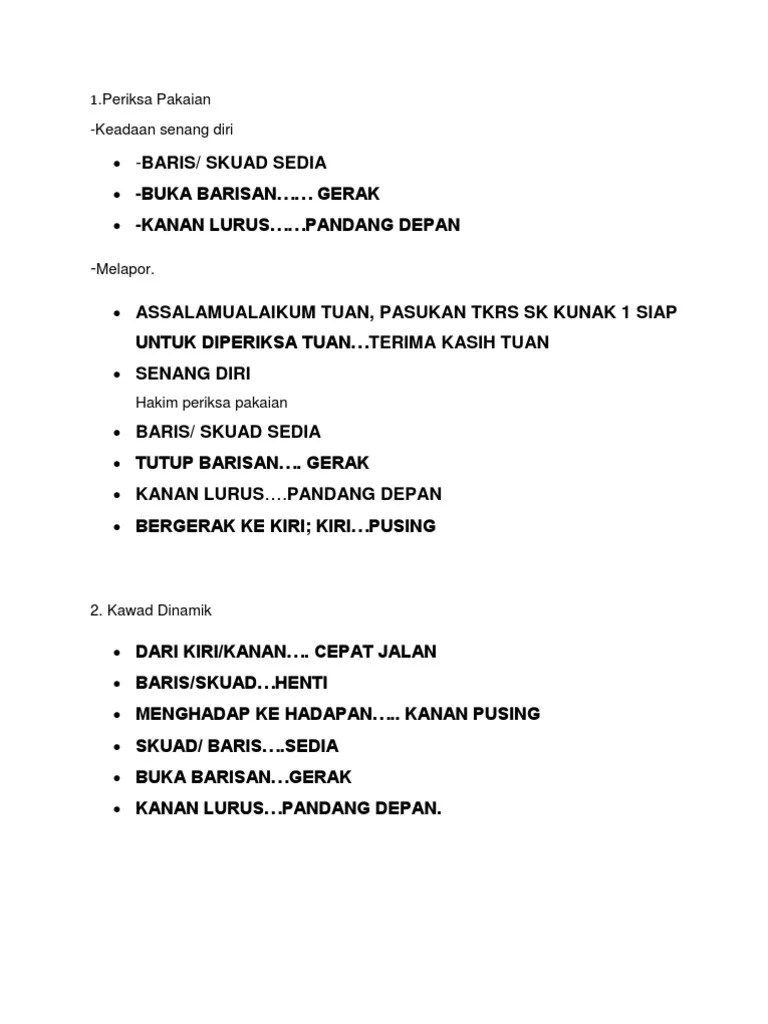 Kertas kerja latihan intensif kawad kaki kadet polis. Arahan kawad kaki kadet polis sila jawab semua soalan yang diberi. Bahasa hukuman kawad arahan bahasa hukuman 1. Pandang hadapanhadapanpandang pandang hadapan(atashadapan(ataskaki kaki kirikiri))16. Pilih arahan kawad kaki yang betul bagi gambar di atas. Nota kawad kaki kadet polis.
